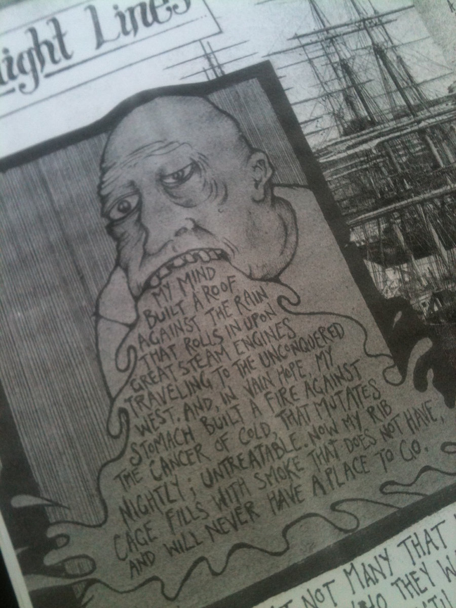 We’ll limb to the cusp and call to our reflections that lie so far beneath us all, giving us glassy eyes and electrical fires inside these rib cages don’t want to die. Burning their little holes, leaving no place to hide from hornets who have no hive, screaming their war cry as we cringe. Bombs fly and no one wins. We’re all in the same boat and we’re all gonna fucking drown.